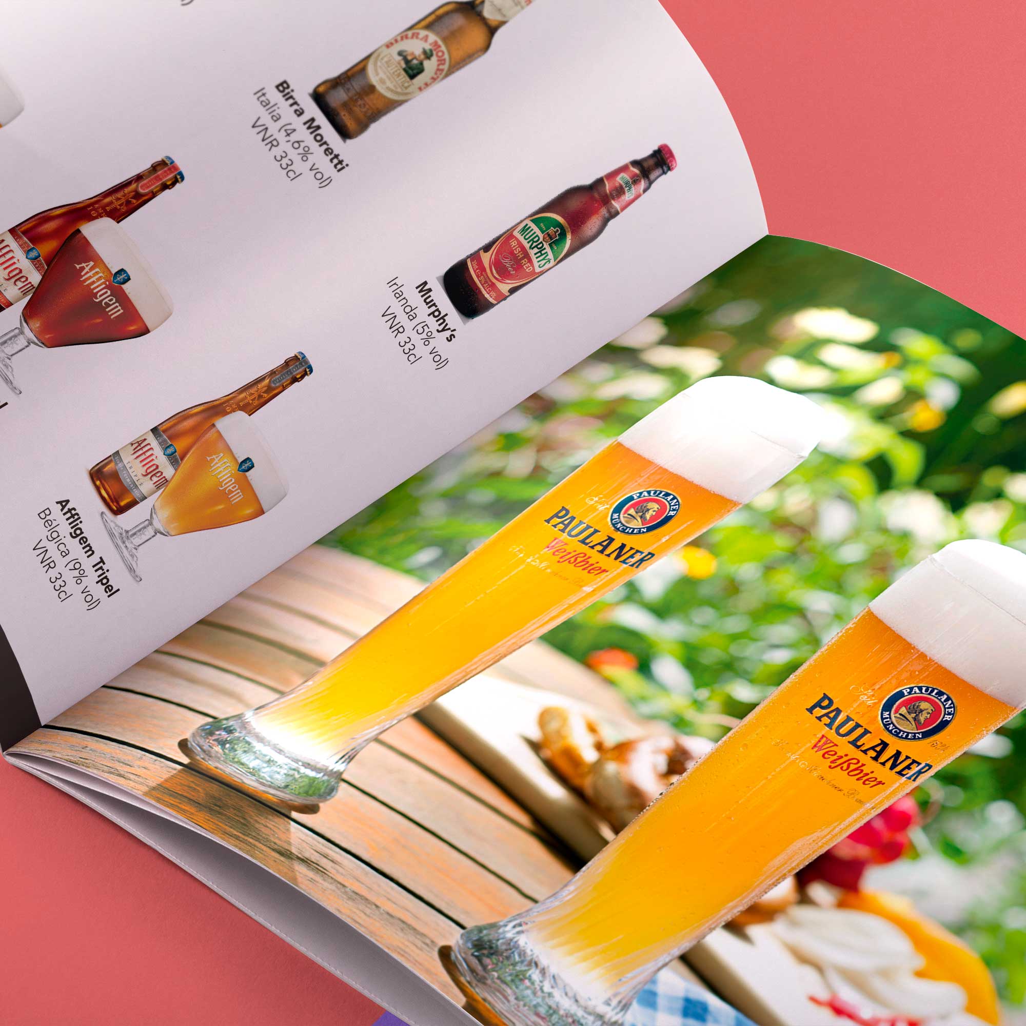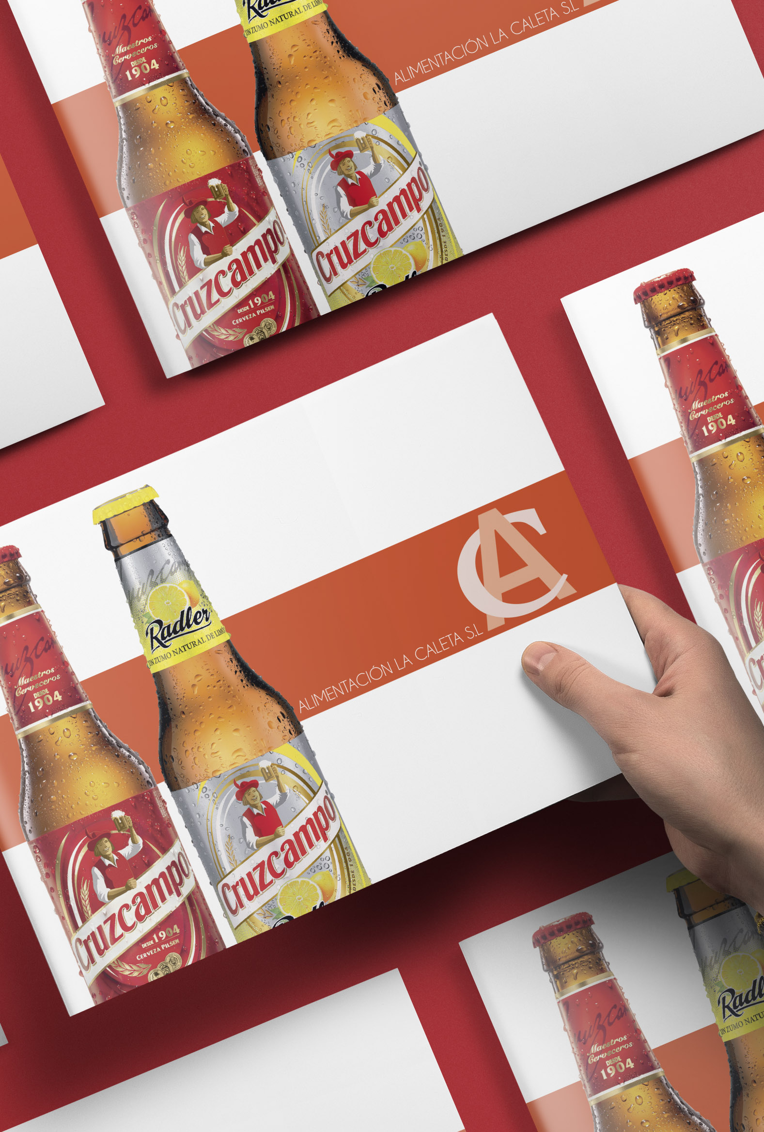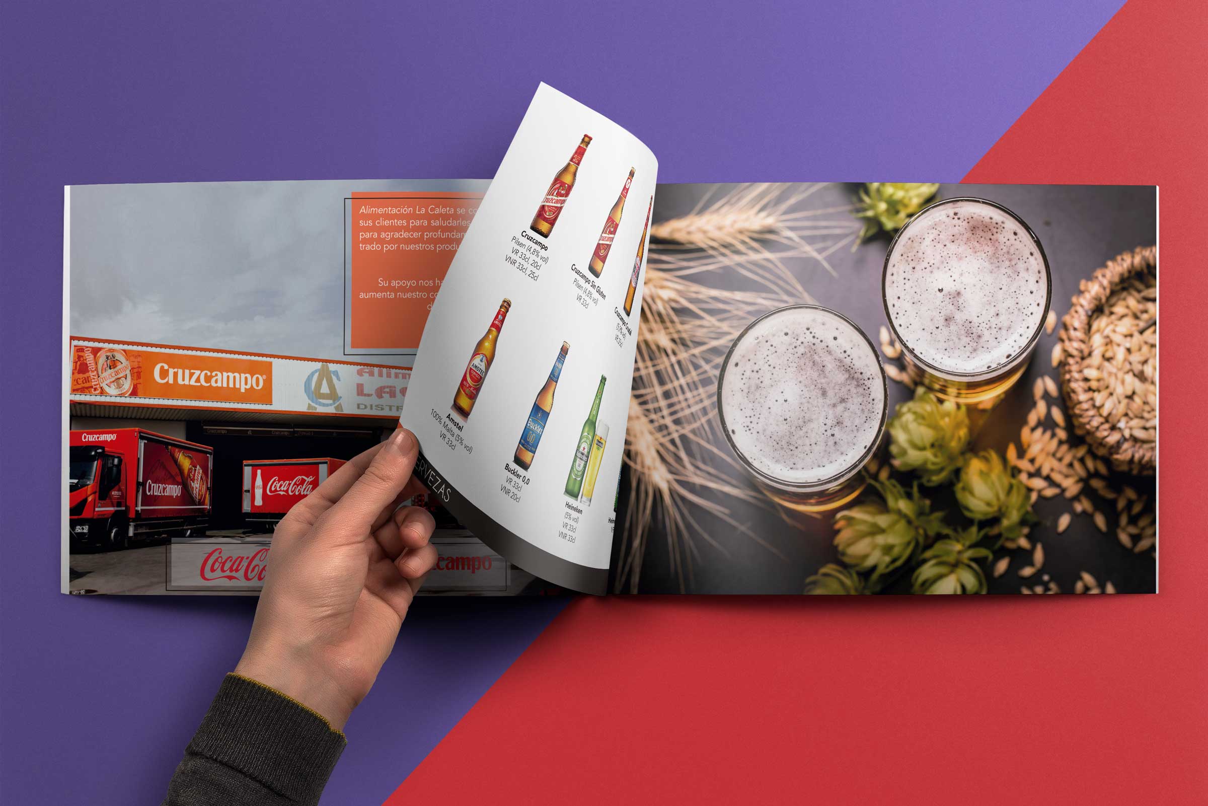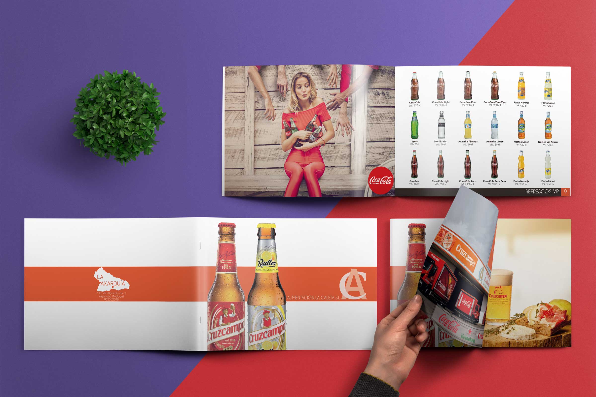 Diseño gráfico editorial de un catálogo de producto para Alimentación La Caleta, empresa del sector de distribución de bebidas en La Axarquía.
